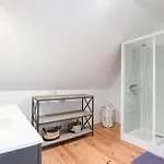 La 3 Bedroom Nice Home In Saint-Marcouf dispone de un cuarto de baño con bañera de hidromasaje y lavadora.